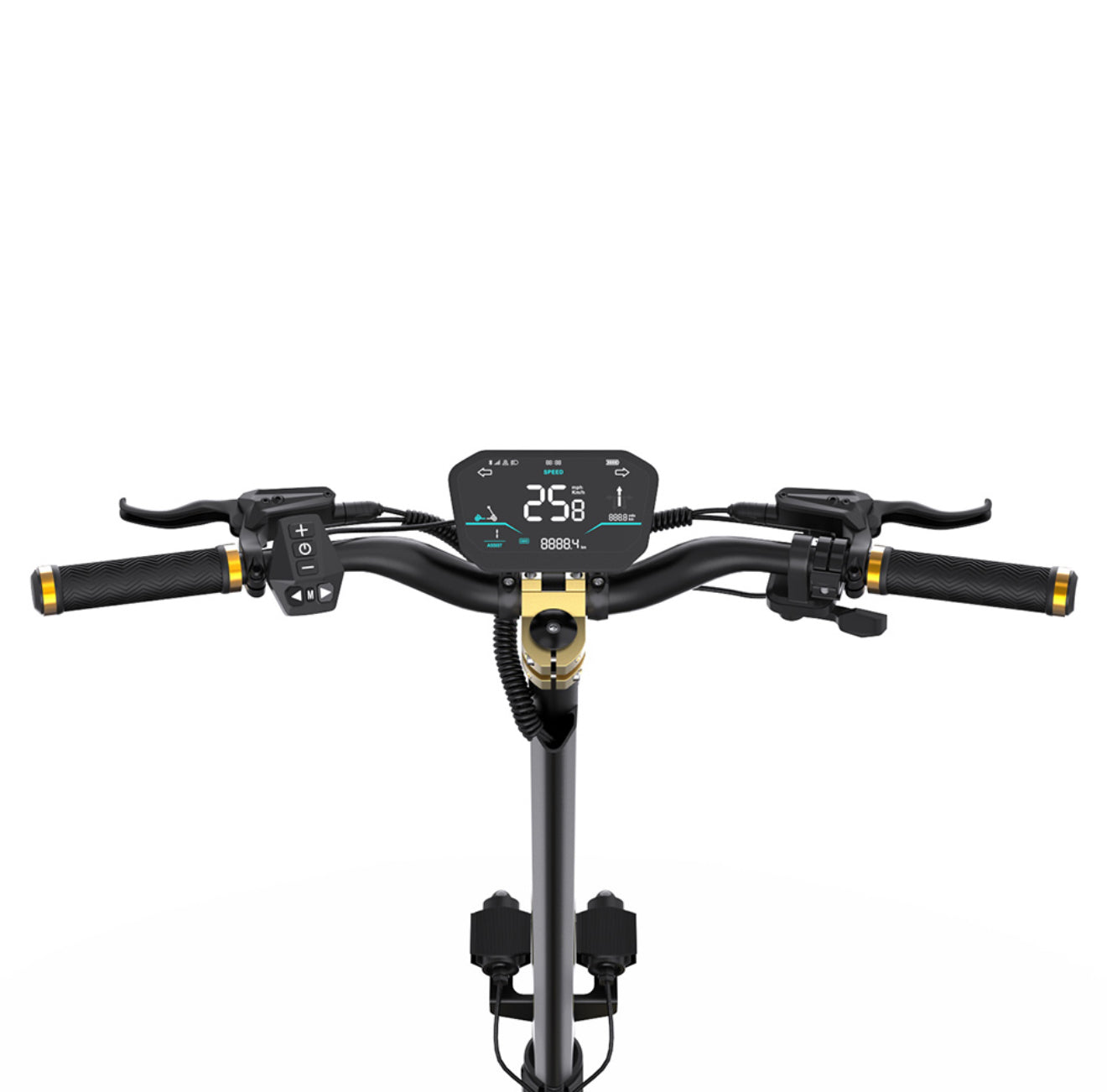 Cette trottinette électrique longue autonomie est équipée d'une batterie haute performance 52V 23,4Ah offrant jusqu'à 60 km d'autonomie. Glissez sans effort à travers la ville en profitant de trajets sans interruption grâce à cette technologie de pointe avec temps de charge optimisé de 8 heures.